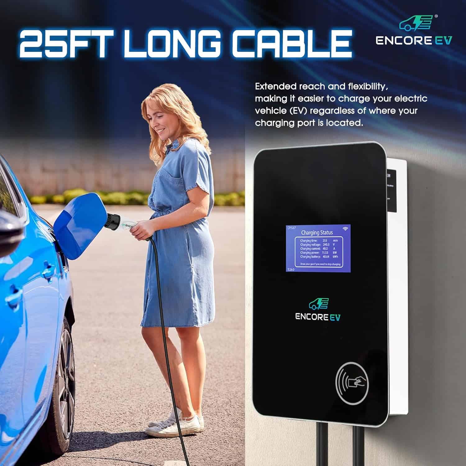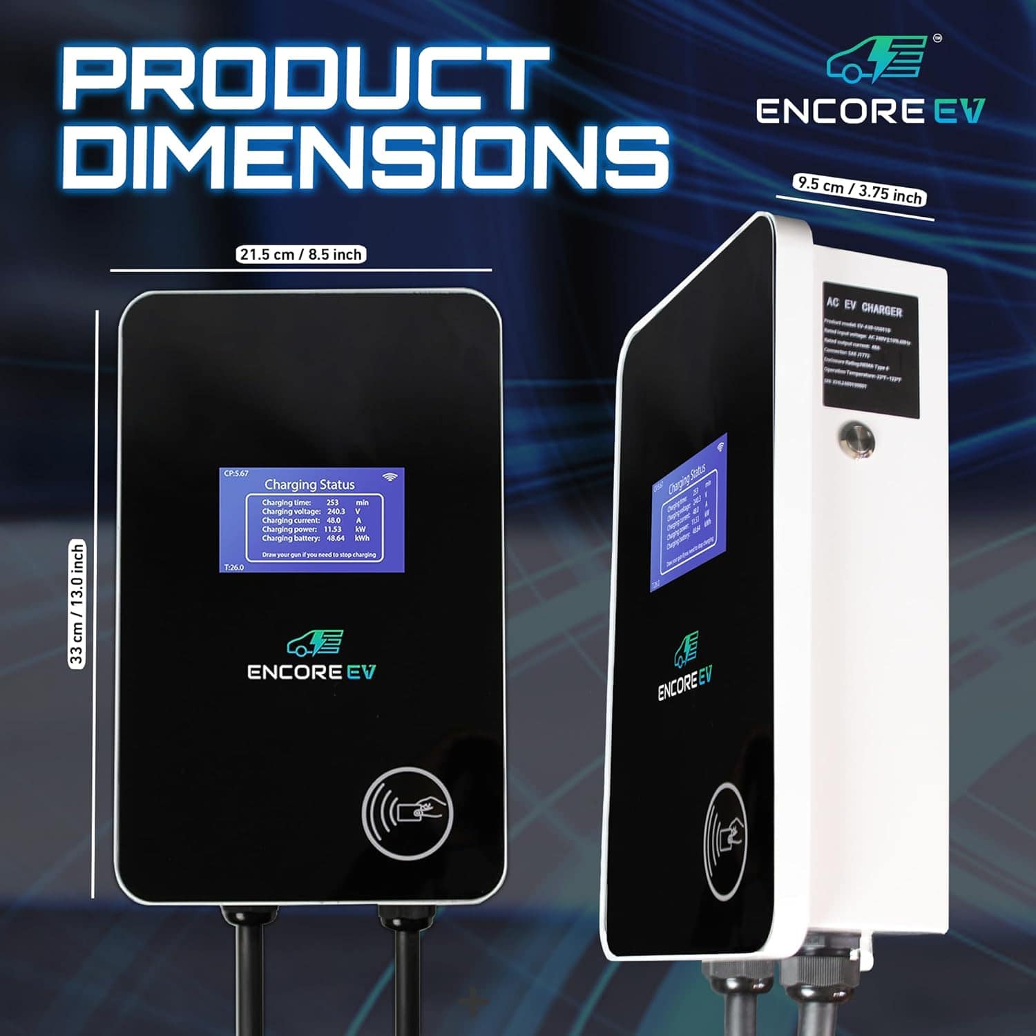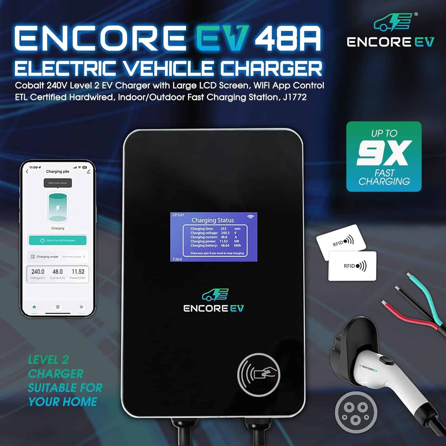 Encore EV 48A Electric Vehicle Charger, Cobalt 240V Level 2 EV Charger with Large LCD Screen, WiFi App Control ETL Certified Hardwired, Indoor/Outdoor Fast Charging Station, J1772